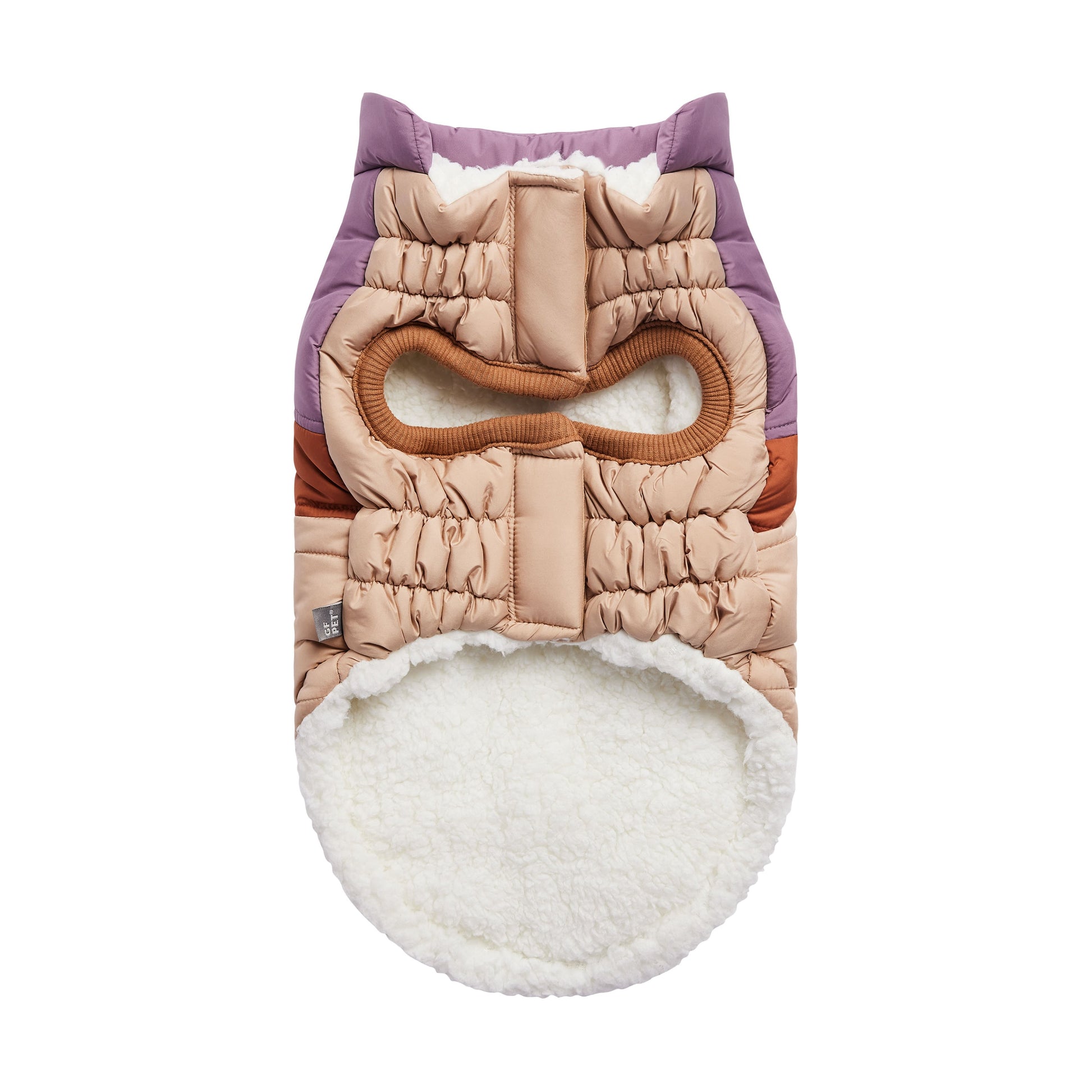 The GF PET Elasto-FIT Retro Puffer is a great choice for active dogs who are looking for the freshest carefree fashion and warmth. Its' ultra puff look and trendy color blocks are a stunning statement of canine vogue! Both retro and modern at the same time, this gorgeous puffer sports oversized faux pockets, accent stitching and next generation styling. With GF PET signature pocket tabs & contrast binding, this retro puffer keeps it real with snuggly warm popcorn sherpa lining. Water repellent and super adjustable, with patented Elasto-FIT technology! Designed for cool dogs!!